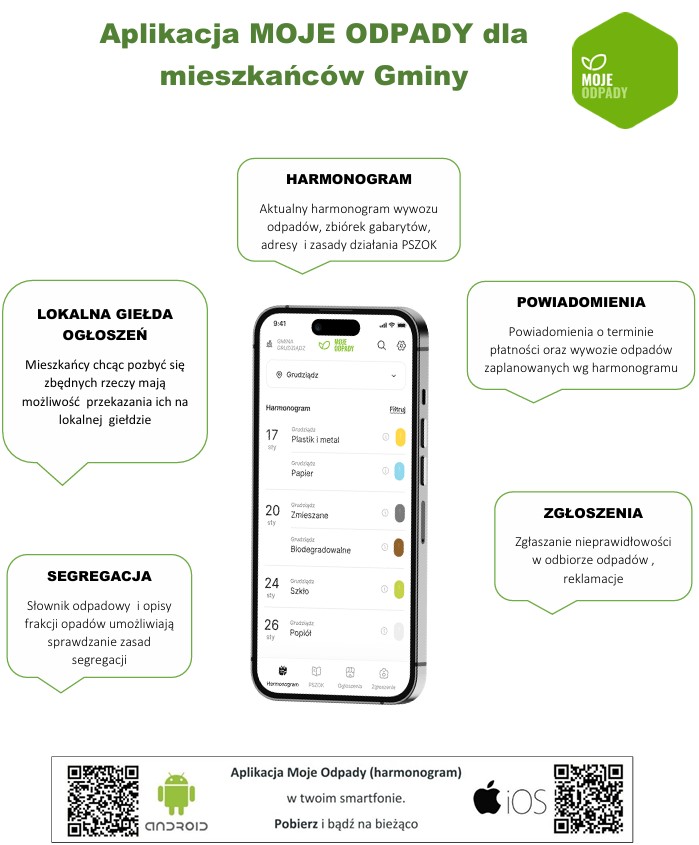 Aplikacja – odbioru odpadów Posted by jna on 5 lutego 2026 Za pomocą aplikacji „Moje Odpady” zniknie konieczność bieżącego śledzenia terminarza. Wywozy plastiku, szkła, papieru, odpadów bio i zmieszanych zostały ujęte w formie estetycznego strumienia danych.